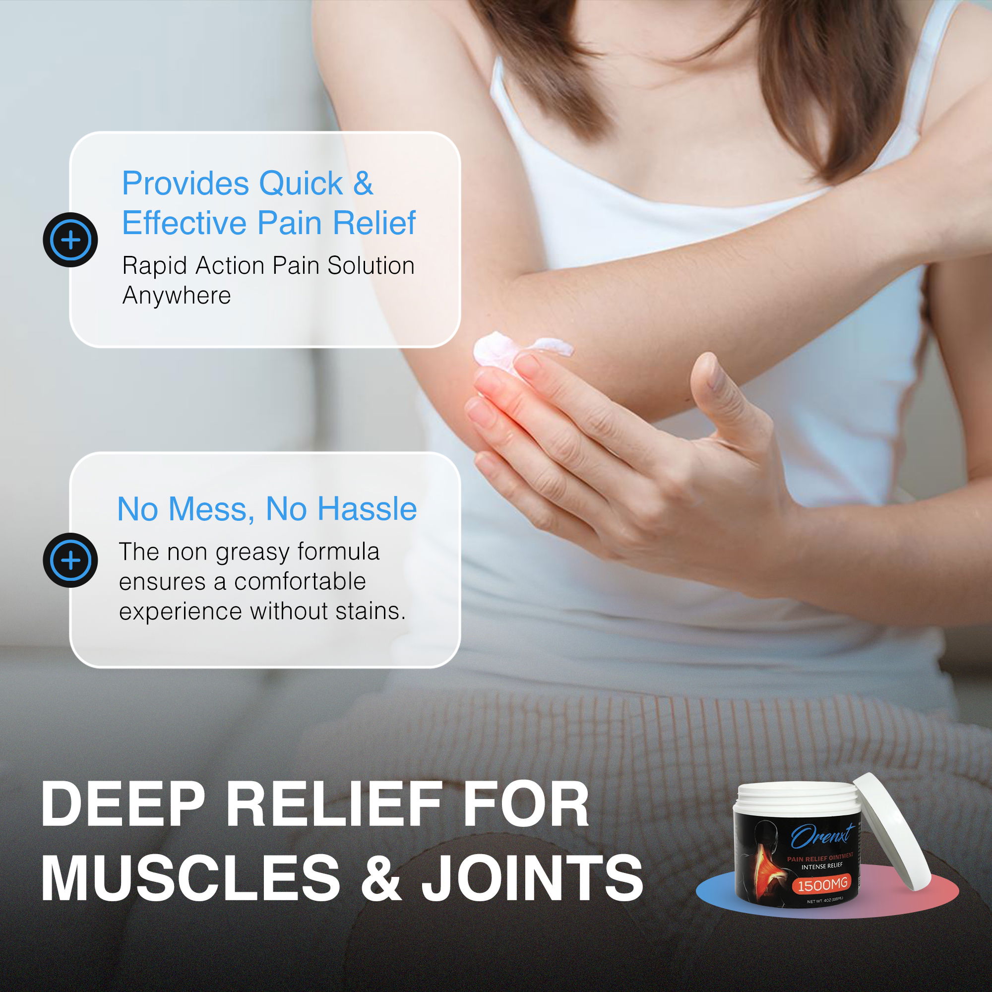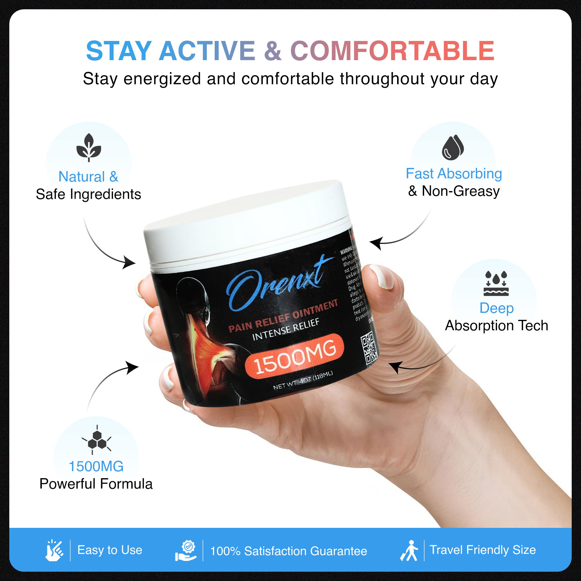 משחת ההקלה לכאבים של Orenxt משלבת מרכיבים טבעיים ונבדקים קלינית להענקת הקלה מהירה, עמוקה ומתמשכת.
